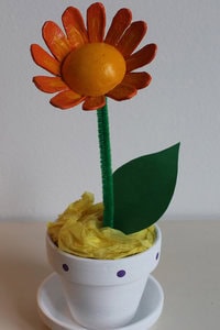 So how about a flower made from an egg carton and a pipe cleaner. Even younger kids can make this pretty project and with older ones it will really bring out their artistry.