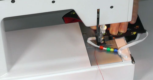 Choose beads that match the colours of your mask and string them onto each of the elastic bands. The hole in the beads should be large enough to allow the elastic to pass through.